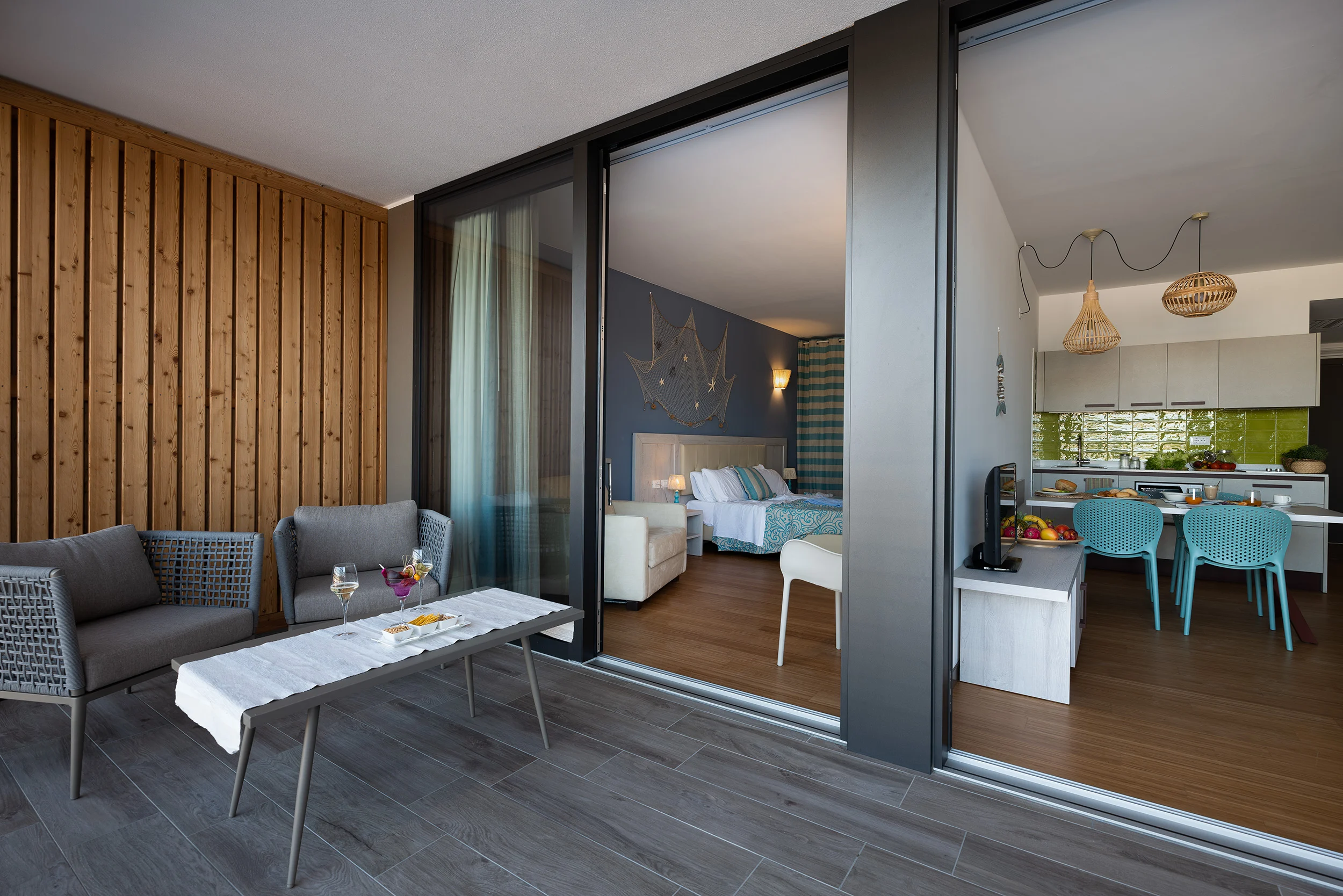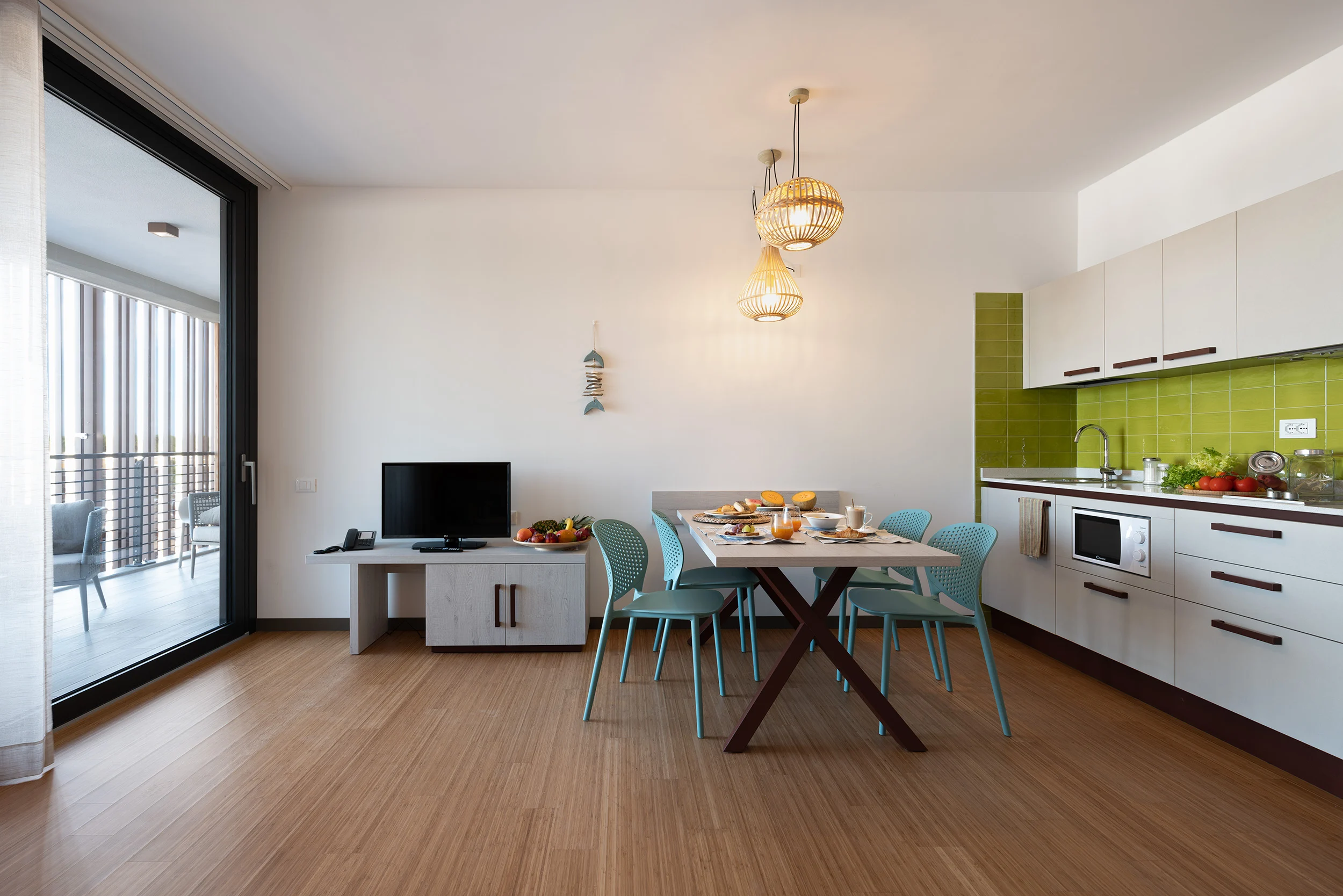 La spaziosa Suite Fiordaliso, situata al primo o secondo piano della clubhouse, è pensata per chi vuole coniugare la comodità del servizio alberghiero e la libertà dell’appartamento.